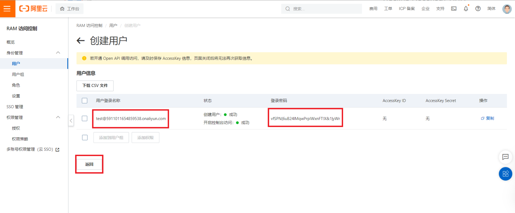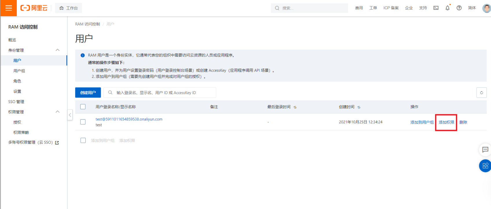 - RAM用戶(RAM帳號、RAM user):一個主帳號底下可以建很多的RAM用戶,可以通過主帳號賦予一些身份,來限制一些規則。