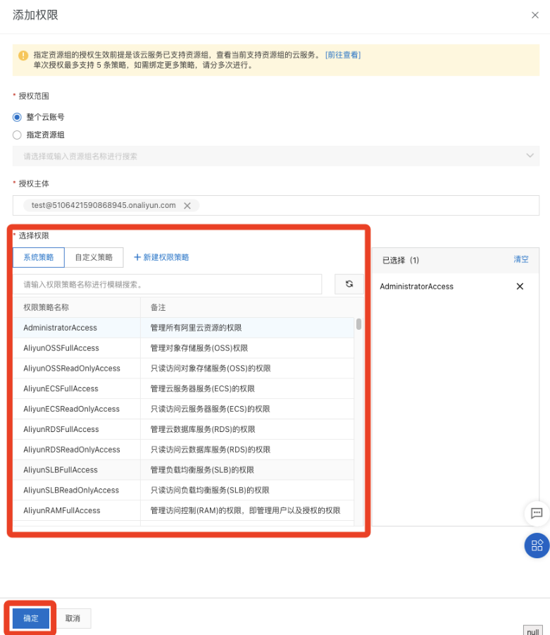 (5) 在選擇權限中選取想要賦予的權限>點擊確定即可完成