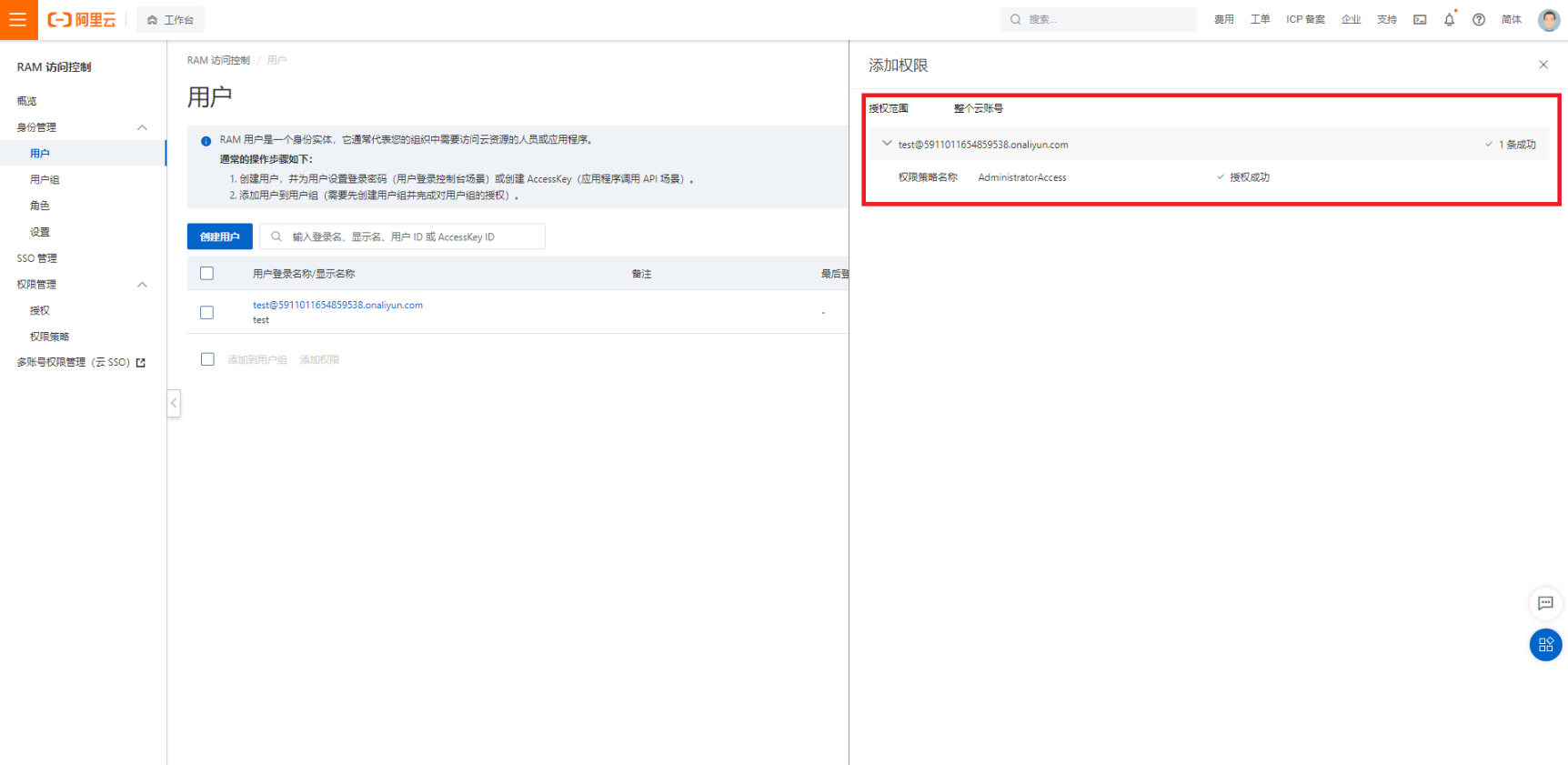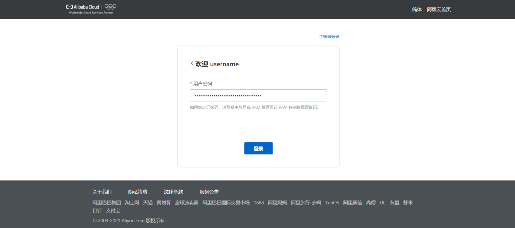 - 阿里雲帳號(主帳號、阿里雲 Account):開始使用阿里雲時註冊的帳號,是所有資源歸屬與計費的主體,也擁有該帳號底下所有資源擁有完整的控制權限。