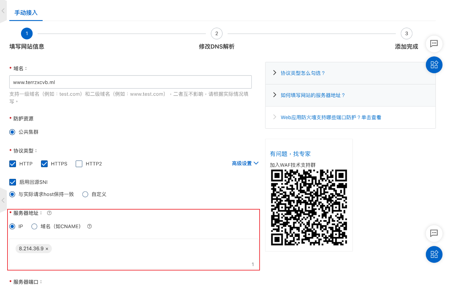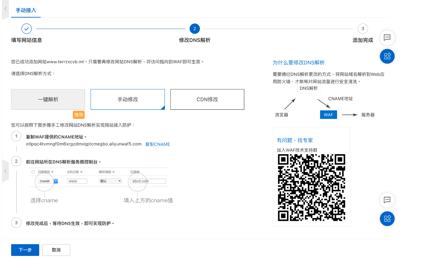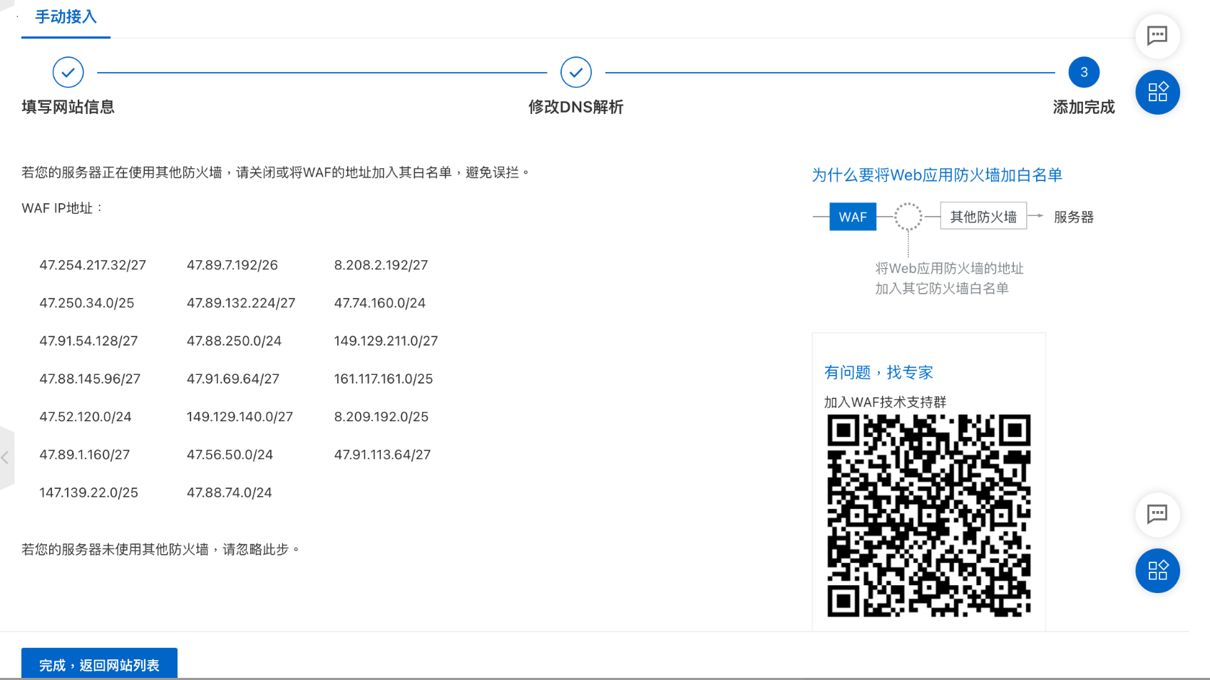 (1) 在目錄選擇 Web 應用防火牆後,選擇網站接入。
