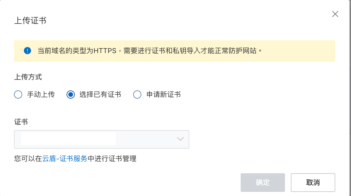 (8) 根據您的證書類型選擇,上傳後即配置完成。