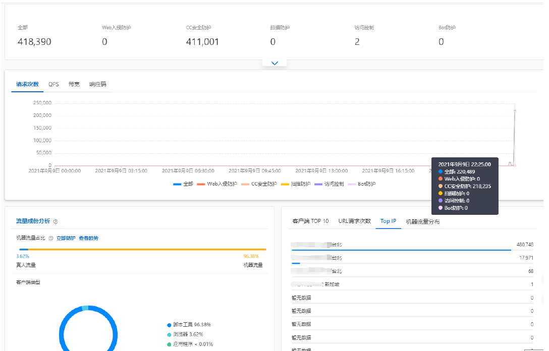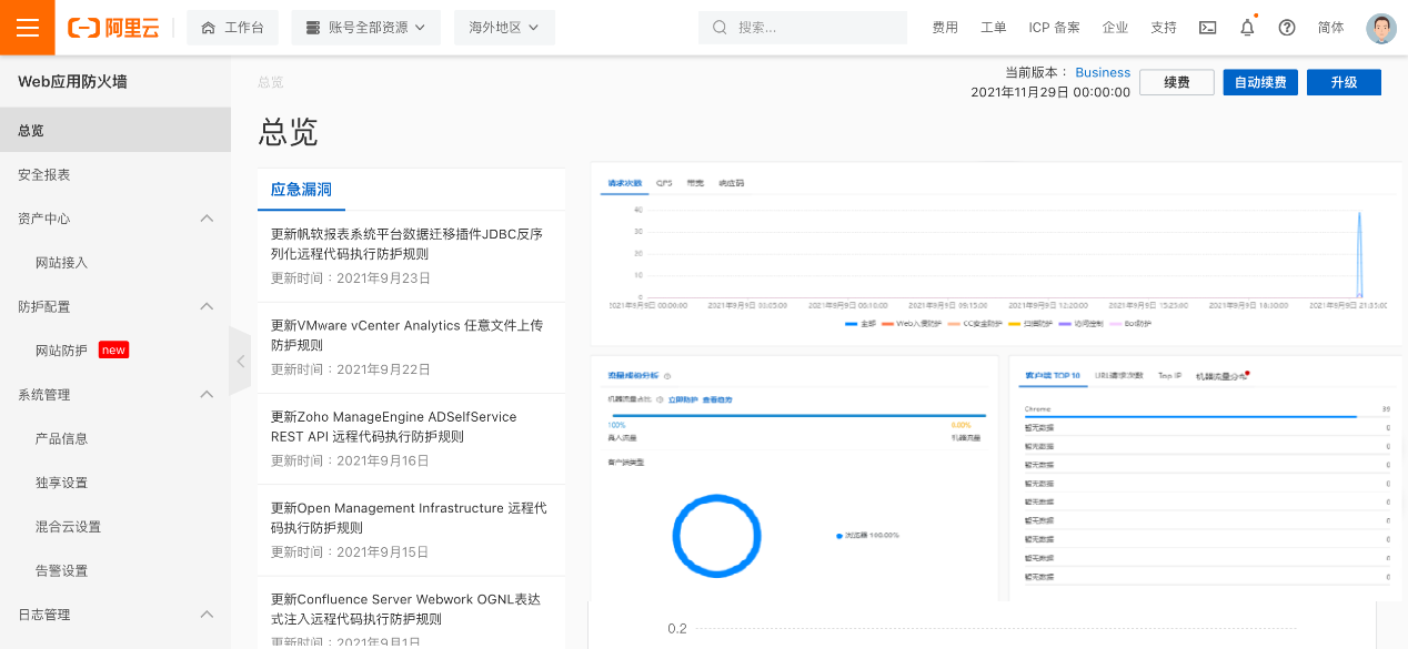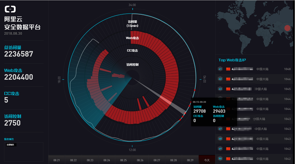 另外阿里雲在平台資料可視化這部分做的比較勤,如需要酷炫直觀的WAF監控牆,也有已經提供已經刻好圖表服務。