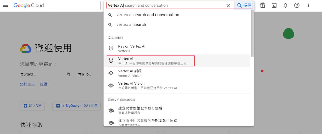 - 登入GCP->搜尋Vertex AI-> 點選Vertex AI