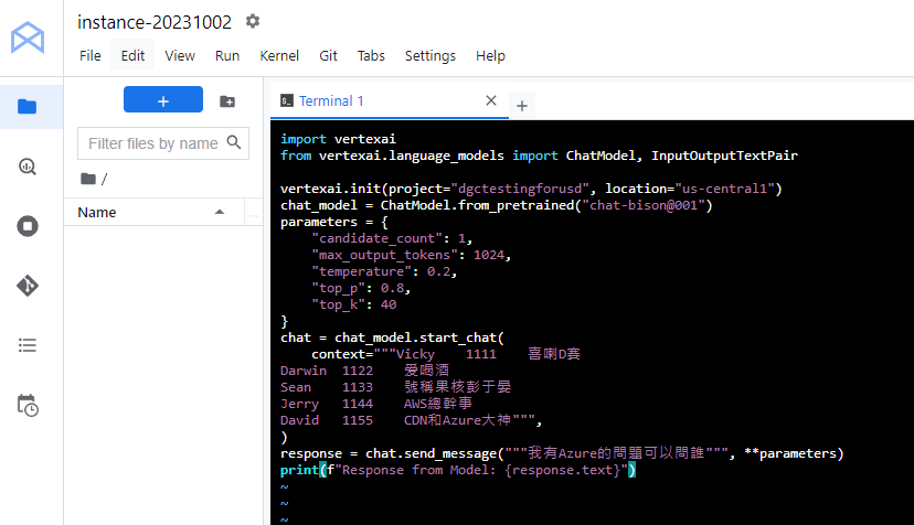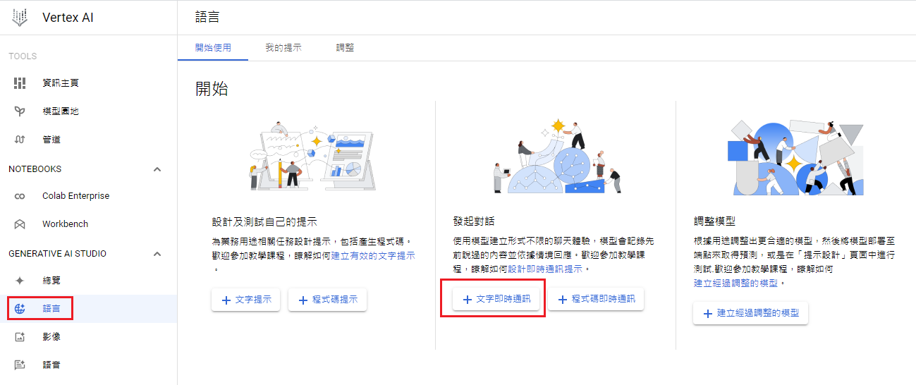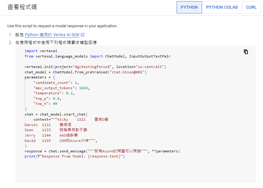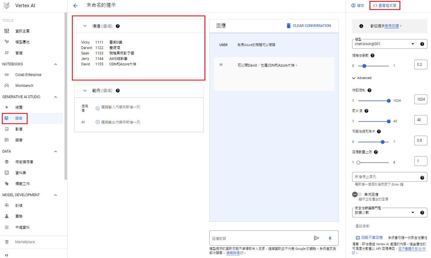 【三】將Vertex AI語言程式碼鍵入notebook中並微調