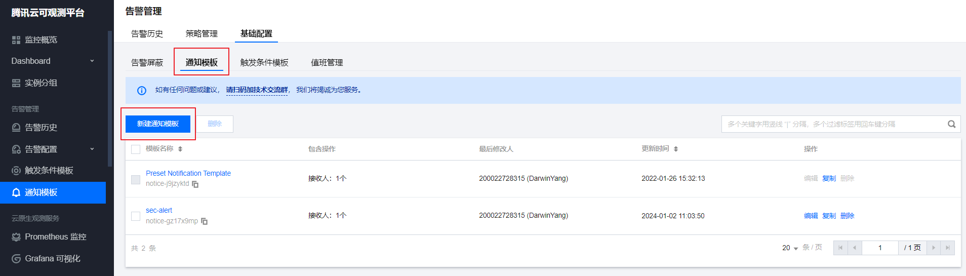 請點選告警管理->通知模板->新建通知模板,如下圖所示: