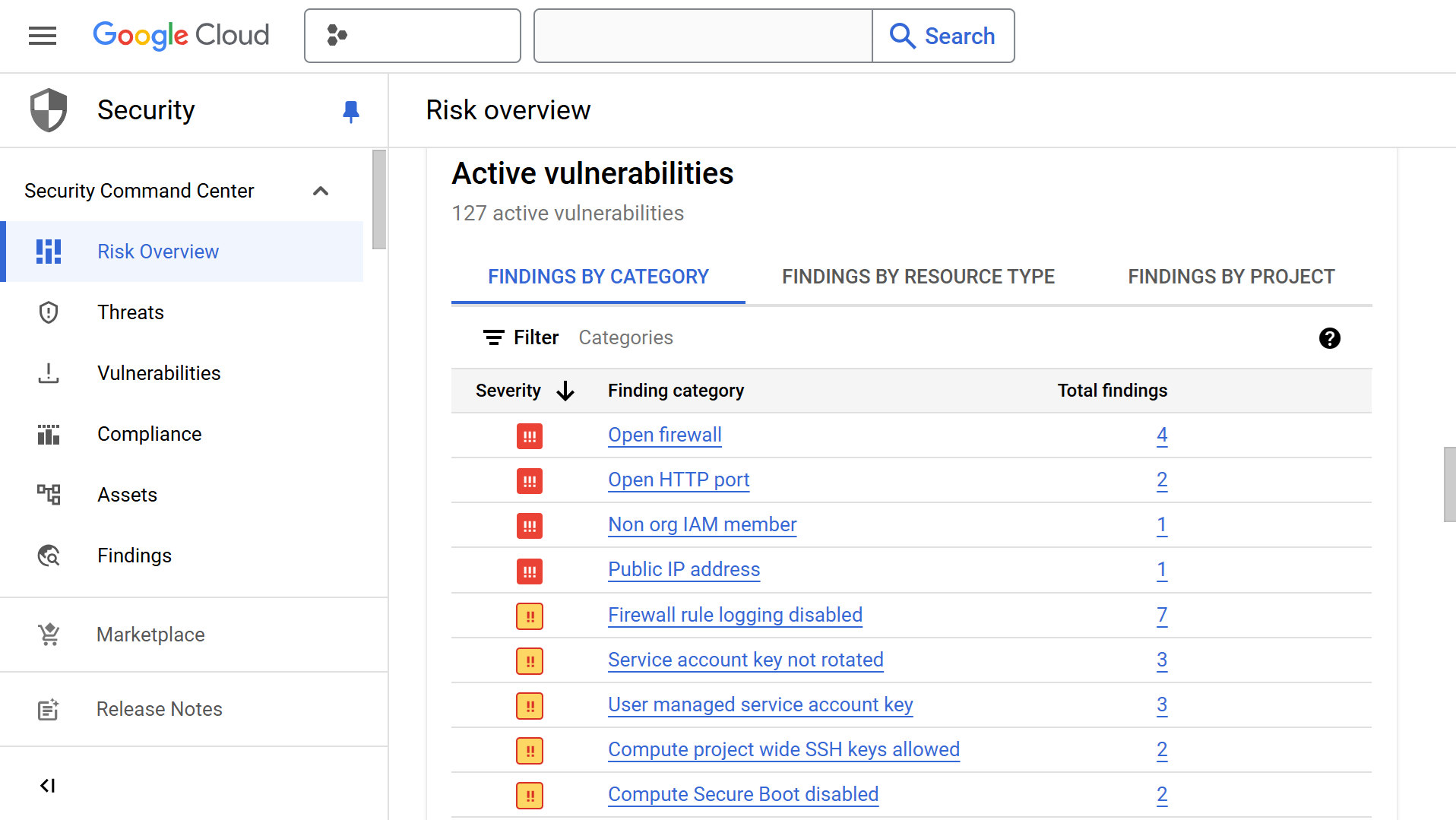 圖三,Security Command Center輕鬆檢視雲環境漏洞風險