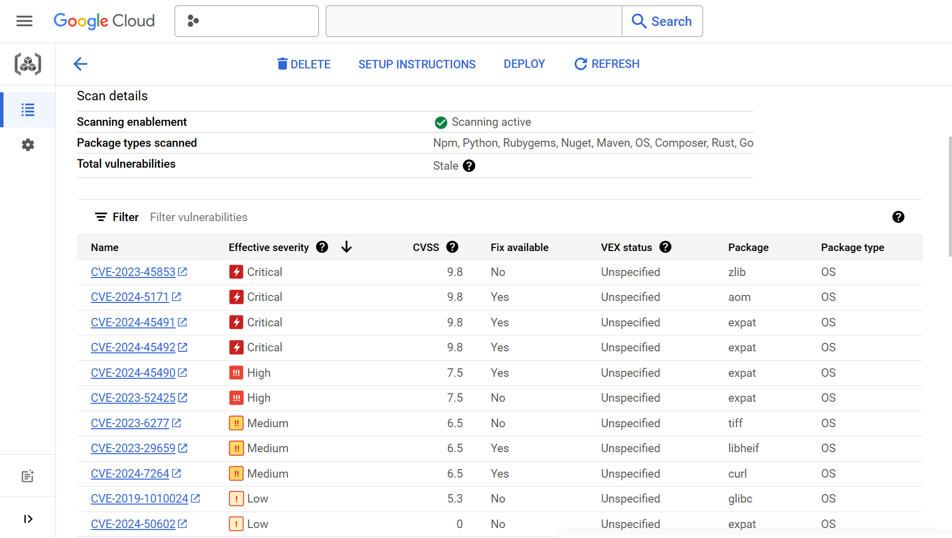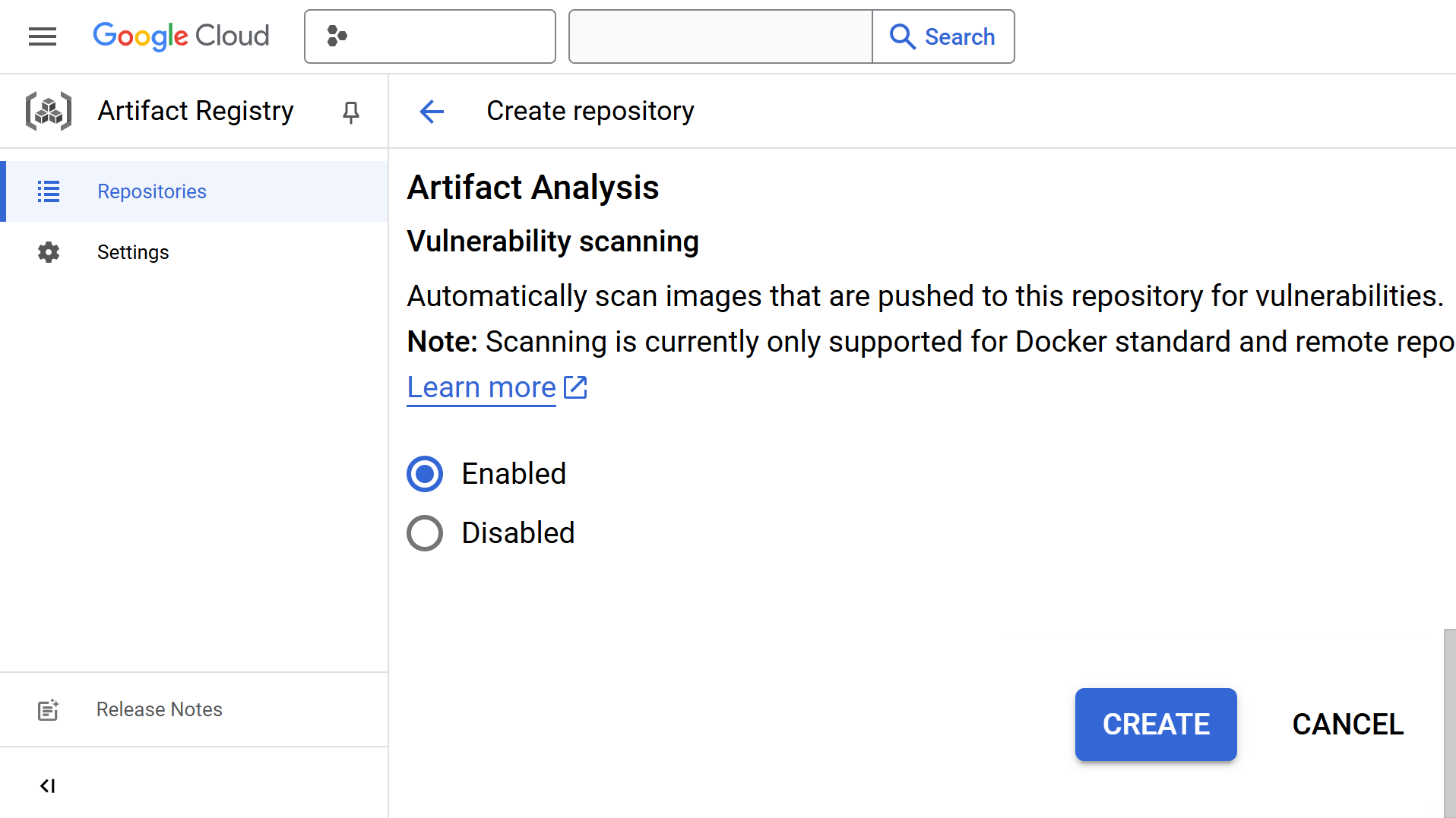 圖五,GAR啟用Artifact Analysis掃描後範例