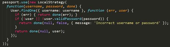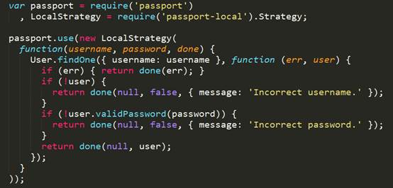 . 使用Node.js中常用的身分驗證middleware套件 " passport ",讓我們來看官網中身分驗證教學範例的程式碼: