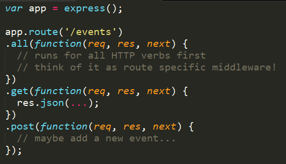 這部分也是絕大多數討論API安全問題時,一定會提到的問題,我們先來看一段express.js官網中的範例程式碼: