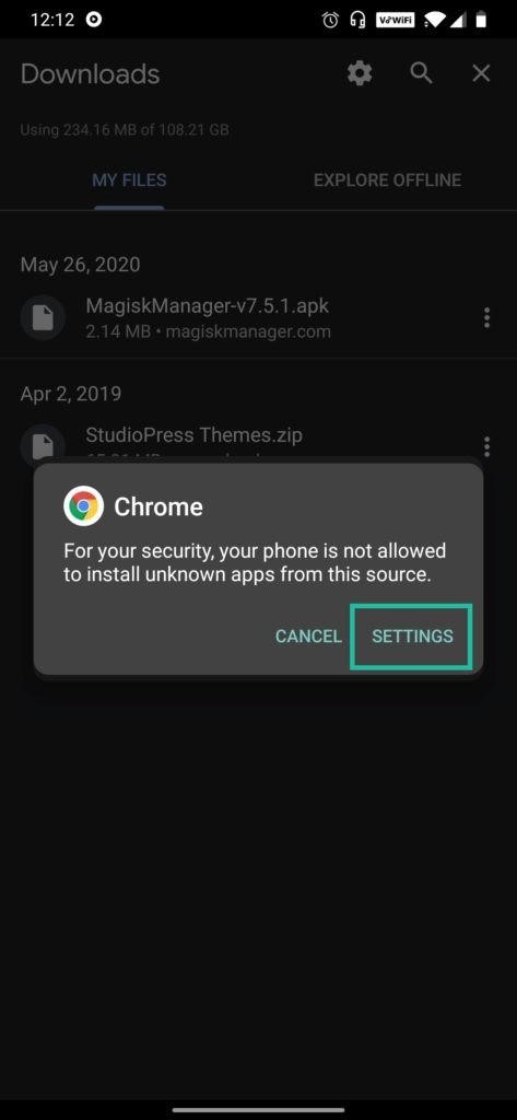 1.連結Magisk的下載點,會出現是否安裝的提醒,選擇SETTINGS