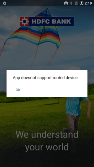 (偵測後顯示文字:App does not support rooted device,之後將App退出)