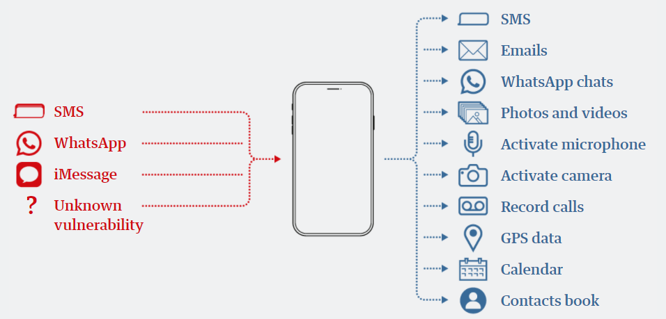 飛馬間諜軟體Pegasus Spyware源自於以色列,是一個鑽研手機製造商還不知道的作業系統漏洞,達到侵入手機的目地。飛馬間諜軟體Pegasus Spyware感染的方式已經不同以往的其他間諜軟體,它無須透過誘騙手機持有人點選惡意連結,就能植入後門程式。