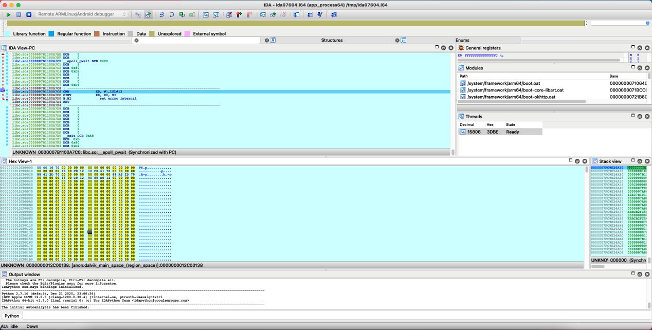 使用Frida或是IDA pro,將受檢測的App在手機執行後,透過駭客工具可清楚錄下記憶體上的動態行為,就可以證明受檢測的金融App是沒有防記憶體偵錯的功能,也就足以證明是無法抵擋飛馬間諜軟體Pegasus Spyware的監控攻擊。