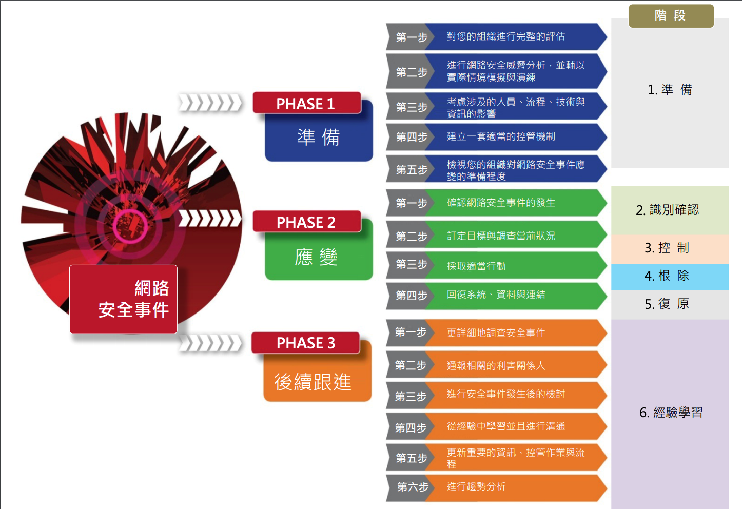 最後一個階段也是最重要的階段辨識經驗學習,透過事件響應的過程了解整個過程的成因,並學習成為經驗,避免之後發生類似情形,透過此步驟形成一個正面的循環回到準備狀態,即可以讓整體資安的防護越來越完善。