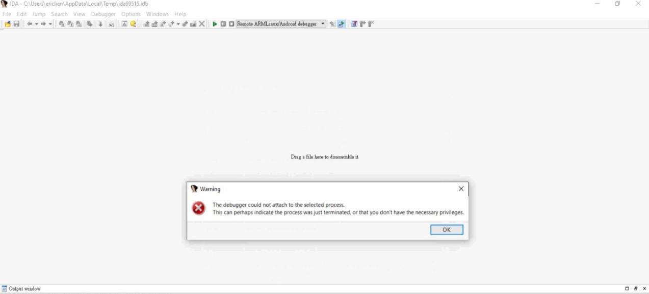 市面上有眾多防止Debugger的安全工具,只要選擇導入工具之後,就能讓駭客工具如下圖般的失效,證明是無法動態偵測的狀況下,就是一個好的App安全產品。