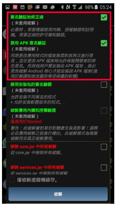 3.把簽名驗證使用正確和進用APK簽名驗證兩個打勾
