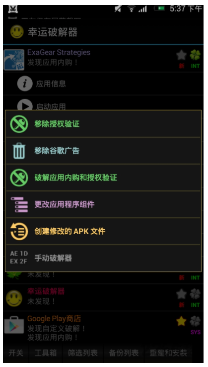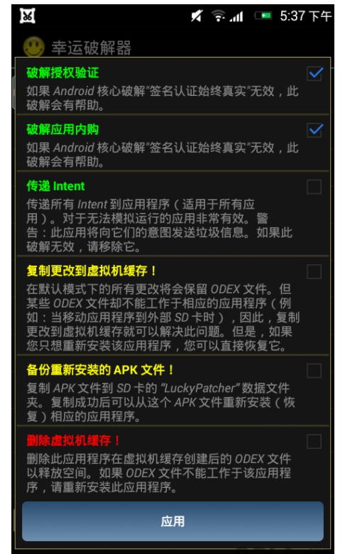 1.安裝幸運破解器之後,選擇破解授權驗證和破解應用內購