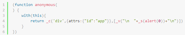 以Angular和Vue的例子而言可以發現它們都使用"{{}}"作為特殊操作的語法格式。通常以攻擊而言可以先嘗試輸入"{{7*7}}",如果成功被模板引擎解析的話就會變成49,這裡是攻擊前端,我們的目標是執行JavaScript,因此我們可以嘗試輸入"{{alert(0)}} ",但我們可以發現沒有辦法成功,不過我們可以分析模板引擎的行為,觀察我們的輸入如何被執行。