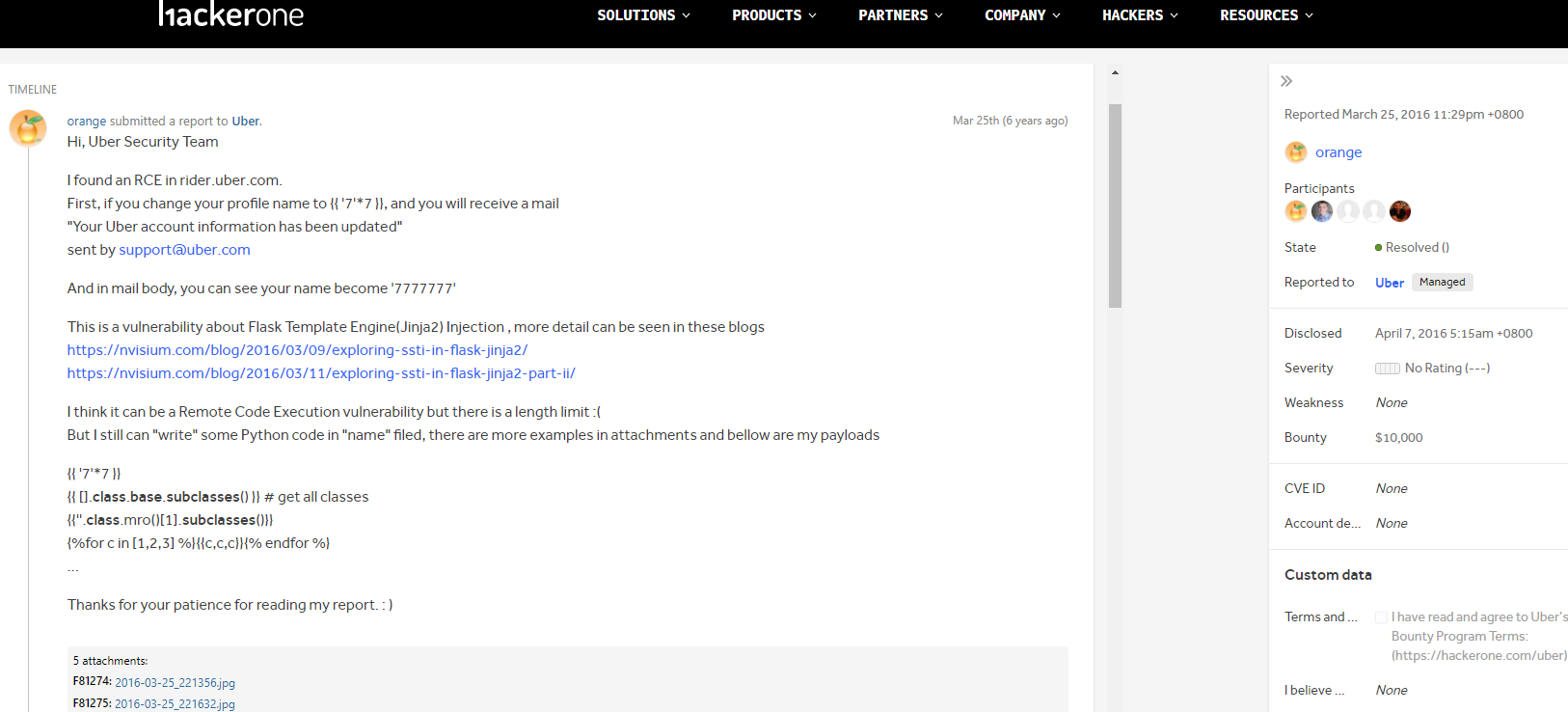 此案例為台灣傳奇滲透師 Orange 於 2016 年分享的 Uber 遠端代碼執行。