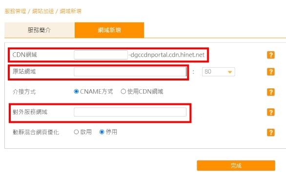 登入CDN Portal新增一個CDN網域(開頭名稱自訂,尾綴固定中華模板,例如xxx-demo.cdn.hinet.net)
