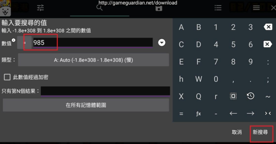 2-4回到GameGuardian修改器內,重複一次按放大鏡並且搜尋955